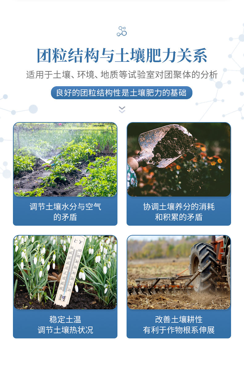 1、土壤團(tuán)粒結(jié)構(gòu)對土壤肥力起著重要作用。良好的團(tuán)粒結(jié)構(gòu)體一般應(yīng)具備三方面的性質(zhì):具有一定的大小,過大或過小都對形成適當(dāng)?shù)目紫侗壤焕?具有多級孔隙,大孔隙可通氣透水,小孔隙保水保肥;具有一定的穩(wěn)定性,即水穩(wěn)性、機(jī)械穩(wěn)性和生物學(xué)穩(wěn)定性。良好的團(tuán)粒結(jié)構(gòu)性是土壤肥力的基礎(chǔ),團(tuán)粒結(jié)構(gòu)與土壤肥力的關(guān)系主要表現(xiàn)在以下幾個方面:調(diào)節(jié)土壤水分與空氣的矛盾;協(xié)調(diào)土壤養(yǎng)分的消耗和積累的矛盾;穩(wěn)定土溫,調(diào)節(jié)土壤熱狀況;改善土壤耕性,有利于作物根系伸展。土壤團(tuán)粒分析儀適用于土壤、環(huán)境、地質(zhì)等試驗(yàn)室對團(tuán)聚體的分析。