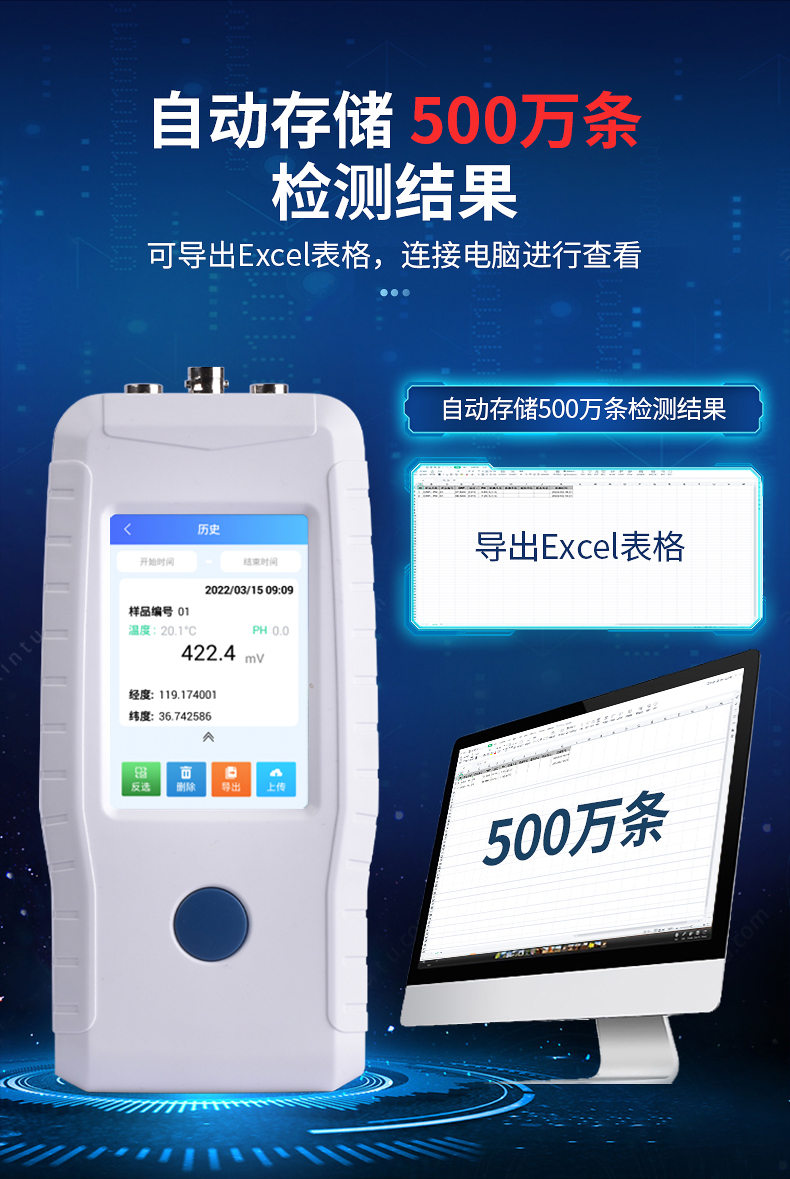 ●檢測結(jié)果存儲容量500萬條,支持?jǐn)?shù)據(jù)存儲、查閱。