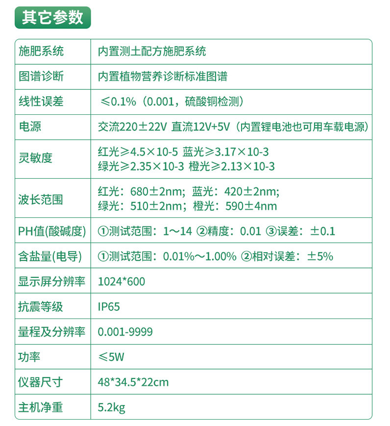 土壤氮磷鉀誤差≤1%,有機質(zhì)誤差≤2%,微量元素相對誤差≤5%;肥料單項誤差≤0.5%,氮磷鉀三項誤差≤1%;